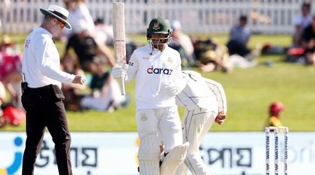 তামিম ৩৫* এবং মাহমুদুল ৩১* রানে অপরাজিত আছেন। শেষ বেলা হলেও ভালোই ব্যাট চালিয়েছেন তামিম-মাহমুদুল। ওভারপ্রতি রান উঠেছে ৪ করে। তামিম ৪টি এবং মাহমুদুল ৫টি বাউন্ডারি হাঁকিয়েছেন। এই ১৯ ওভারের মাঝেই চার বোলার ব্যবহার করেছে শ্রীলঙ্কা। তবে সাফল্য আসেনি। দ্বিতীয় দিনের খেলা শেষে ৩২১ রানে পিছিয়ে বাংলাদেশ, হাতে আছে ১০ উইকেট।