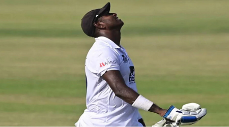 ১৫৩ ওভারের ষষ্ঠ বলে আউট হন ম্যাথুজ। ৩৯৭ বলে ১৯ চার ও ১ ছক্কায় ম্যাথুজ সাজান তার ইনিংসটি। এজন্য ৫৭৮ মিনিট ক্রিজে থাকতে হয়েছে। ১১৪ রানে দিন শুরু করা এ ব্যাটসম্যান শুরু থেকেই বেশ সাবলীল হয়ে ব্যাটিং করেছেন। ধীর স্থির থেকে বড় করেছেন ইনিংস। সঙ্গীদের আসা-যাওয়ার মিছিলে এক পর্যায়ে মনে হচ্ছিল ডাবল সেঞ্চুরিটা হবে না। কিন্তু মনোবলে কোনো চিড় ধরতে না দিয়ে ম্যাথুজ দেয়াল হয়ে দাঁড়িয়েছিলেন।