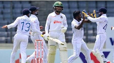 রাজিথার পরের বলেই আউট সাকিব। তিনিও রানের খাতা খুলতেই পারেননি। রাজিথার ৩য় শিকার তিনি।