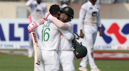 ডেস্কনিউজঃ শ্রীলঙ্কার বিপক্ষে সিরিজের দ্বিতীয় ও শেষ টেস্টে হতাশা দিয়েই শুরু হয়েছিল বাংলাদেশের। দলীয় ২৪ রানেই ৫ উইকেট হারিয়ে মহা বিপর্যয়ে পড়েছিল স্বাগতিকরা। তবে এই ধ্বংস্তূপ থেকে দলকে রক্ষা করেন মুশফিকুর রহিম ও লিটন দাস। দুজনেরই অপরাজিত সেঞ্চুরি ও আড়াইশ রানে জুটিতে প্রথম দিনটি নিজেদের করে নিয়েছে টাইগাররা।