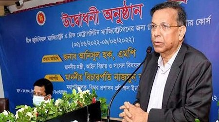 বিচার বিভাগের বাজেট বাড়ানো প্রসঙ্গে তিনি বলেন, যুক্তিসংগত যে কোন প্রয়োজনে অর্থ দিতে অর্থ মন্ত্রণালয় কার্পণ্য করবে না। জাতীয় বাজেটে আইন মন্ত্রণালয়কে যে টাকা দেওয়া হয়, আগে কোন সরকার তা দেয়নি। প্রধানমন্ত্রী শেখ হাসিনার সরকারই প্রথম বিচারকদের প্রশিক্ষণের জন্য অর্থ বরাদ্দ দিয়েছে। সুপ্রিম কোর্টে ই-জুডিসিয়ারি প্রকল্পের একটি অংশ বাস্তবায়নের জন্য ২১৭ কোটি টাকা বরাদ্দ দিয়েছে সরকার। এটা আইন মন্ত্রণালয়ের নামে বরাদ্দকৃত মূল বাজেটের বাইরে।