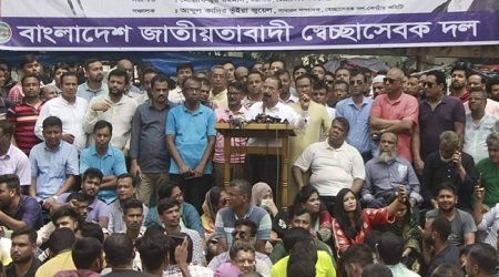 বুধবার দুপুরে রাজধানীর জাতীয় প্রেসক্লাবের সামনে স্বেচ্ছাসেবক দল আয়োজিত বিক্ষোভ সমাবেশে তিনি এসব কথা বলেন।