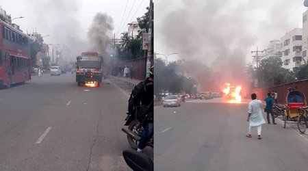 ডেস্কনিউজঃ রাজধানীর প্রগতি সরণিতে একটি বাসে আগুন দিয়েছে দুর্বৃত্তরা। খবর পেয়ে ফায়ার সার্ভিসের দুটি ইউনিট আগুন নিয়ন্ত্রণে এনেছে। তবে এর আগেই অগ্নিকাণ্ডে বাসটি সম্পূর্ণ পুড়ে গেছে।
