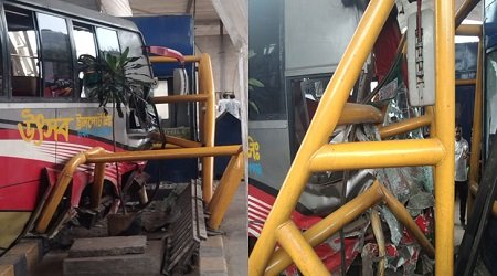 টোলপ্লাজার ওই কাউন্টারের সামনে গার্ডার থাকায় প্রাণে বেঁচে যান কাউন্টারে থাকা কর্মকর্তা। এ সময় যাত্রী ও চালক লাফিয়ে গাড়ি থেকে নেমে যান।