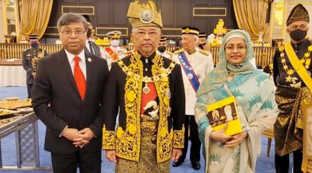 সেখানে বলা হয়, গত সোমবার মালয়েশিয়ার রাজপ্রাসাদ ইস্তানা নিগারায় দেশটির ১৬তম রাজা ইয়াং দি-পার্টুয়ান আগাং আল-সুলতান আবদুল্লাহ রিয়াতউদ্দীন আল-মুস্তফা বিল্লাহ শাহ এবং রানী তুঙ্কু আজিজাহ আমিনাহ মায়মুনাহ ইস্কান্দারিয়াহ আগংয়ের সঙ্গে মালয়েশিয়ায় নিযুক্ত বাংলাদেশের হাইকমিশনার মো. গোলাম সারোয়ার এবং তাঁর সহধর্মিনী মিসেস তাসলিমা সারোয়ার শুভেচ্ছা বিনিময় করেন।