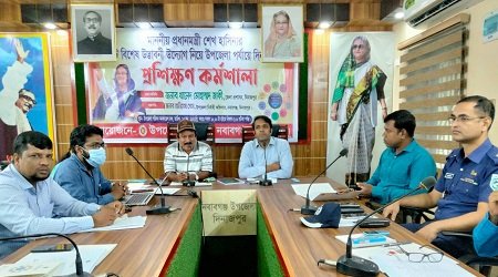 এম এ সাজেদুল ইসলাম(সাগর),নবাবগঞ্জ (দিনাজপুর) : দিনাজপুরের নবাবগঞ্জে দেশের চলমান উন্নয়ন অগ্রযাত্রায় প্রধানমন্ত্রী শেখ হাসিনার ১০টি বিশেষ উদ্ভাবনী উদ্যোগে বিষয়ে প্রশিক্ষণ কর্মশালা অনুষ্ঠিত হয়েছে। সোমবার (১৩ জুন) সকাল১১টায় উপজেলা প্রশাসনের আয়োজনে উপজেলা নির্বাহী কর্মকর্তা অনিমেষ সোম এর সভাপতিত্বে উপজেলা পরিষদ সভাকক্ষে ডিজিটাল বাংলাদেশ, কর্মসংস্থান, আশ্রয়ন, বিদ্যুৃৎ, নারীর ক্ষমতায়ন, পরিবেশ সুরক্ষা, সামাজিক নিরাপত্তা,পল্লী সঞ্চয় ব্যাংক, স্বাস্থ্য, শিক্ষাসহ নানামুখী ১০ টি উদ্ভাবনী বিষয় নিয়ে প্রশিক্ষণ অনুষ্ঠিত হয়েছে।শিক্ষক, রাজনীতিবিদ, সাংবাদিক ও গন্যমান্য ব্যক্তিবর্গদের নিয়ে প্রশিক্ষণে প্রধান অতিথি হিসেবে উপস্থিত ছিলেন উপজেলা পরিষদের চেয়ারম্যান মোঃ আতাউর রহমান। এসময় প্রজেক্টরের মাধ্যমে ১০টি উদ্ভাবনী বিষয়ে দিক নির্দেশনা পেশ করেন তথ্য ও প্রযুক্তি অধিদপ্তরের সহকারী প্রোগ্রামার মোঃ তারেক সেফাতী।