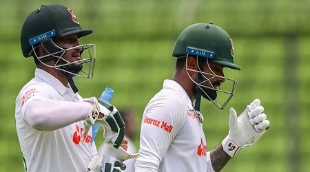 আর শনিবার তৃতীয় দিনে দলের খাতায় ১৪ রান যোগ করতেই বিদায় নেন শান্ত। ইনিংসের ২৯তম ওভারে মায়ার্সের করা চতুর্থ বলে খোঁচা লাগিয়ে ক্যাচ তুলে দেন প্রথম স্লিপে থাকা জন ক্যাম্পবেলের হাতে। ৪৫ বল মোকাবিলায় ৩ বাউন্ডারিতে তার ব্যাট থেকে আসে ১৭ রান। এরপর ৩৫তম ওভারে এসে মায়ার্স এলবিডব্লিউর ফাঁদে ফেলেন মুমিনুল হককে। রিভিউ আবেদন করে লাভ হয়নি।