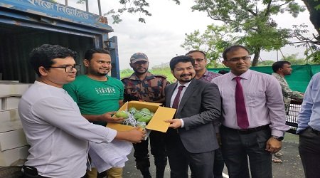 বাদল আহাম্মদ খান ,ব্রাহ্মণবাড়িয়া জেলা প্রতিনিধি : ভারতের ত্রিপুরা রাজ্যের নতুন মুখ্যমন্ত্রী মানিক সাহা ও রাজ্যের গণ্যমান্যদের জন্য উপহার হিসেবে আম্রপলিসহ বিভিন্ন জাতের ৮০০ কেজি আম পাঠিয়েছেন প্রধানমন্ত্রী শেখ হাসিনা। সোমবার দুপুর পৌনে ১টায় ব্রাহ্মণবাড়িয়ার আখাউড়া স্থলবন্দর দিয়ে ১৬০টি কার্টনে করে আমগুলো ত্রিপুরায় পাঠানো হয়।আগরতলা স্থলবন্দরের শূণ্যরেখায় আমগুলো গ্রহণ করেন ত্রিপুরা রাজ্যের আগরতলাস্থ সহকারী হাইকমিশনার আরিফ মোহাম্মদ। আমগুলো পাঠানোর ক্ষেত্রে আখাউড়া স্থলবন্দরের শোয়েব ট্রেড ইন্টারন্যাশনাল কাস্টমসসহ সকল কার্যক্রম সম্পন্ন করেছে।