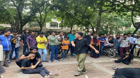 মঙ্গলবার (২১ জুন) বিশ্ববিদ্যালয়ের প্রধান ফটক থেকে শুরু করে বাহাদুর শাহ পার্ক, আইনজীবী সমিতি, চীফ জুডিশিয়াল ম্যাজিস্ট্রেট কোর্ট ও সিএমএম কোর্টের সামনে নাটকটি প্রদর্শন করা হয়।
