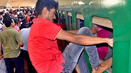 কিন্তু এবার মহাসড়ক এবং এক জেলা থেকে অন্য জেলায় মোটরসাইকেল নিয়ে চলাচল নিষিদ্ধ করা হয়েছে। ফলে এই ঈদযাত্রায় বাস, লঞ্চ ও রেলস্টেশনে উপচেপড়া ভিড় মানুষের।জীবনের ঝুঁকি নিয়ে ট্রেনে চড়ে বাড়ি ফিরছেন মানুষ।