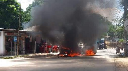 হঠাৎ দেখি মোরসাইকেল দুইটিতে আগুন লাগার সাথে সাথে আমার গাড়িটিতে ও আগুন লেগে যায়।