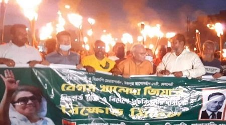 সোমবার (১১ জুলাই) সন্ধ্যায় রাজধানীর শনিরআখড়া এলাকায় এ মশাল মিছিল বের করা হয়। এতে উপস্থিত ছিলেন, বিএনপির মহাসচিব রুহুল কবির রিজভী, যাত্রাবাড়ী থানা বিএনপি নেতা শিপন, সাবেক কেন্দ্রীয় ছাত্রদল নেতা সঞ্জয় দে রিপন ও স্থানীয় বিএনপি ও অঙ্গ সংগঠনের নেতাকর্মীরা।