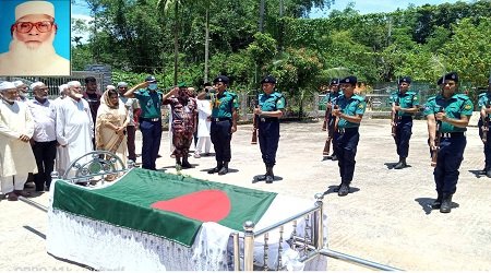 শহিদ আহমেদ খান সাবের,সিলেট প্রতিনিধি : দক্ষিণ সুরমার বিশিষ্ট সমাজসেবী, শিক্ষানুরাগী ও শালিস ব্যক্তিত্ব বীর মুক্তিযোদ্ধা সুবেদার মেজর (অবঃ) আব্দুল হাফিজ এফ এম এর দাফন সম্পন্ন হয়েছে।১৫ জুলাই শুক্রবার দুপুর সাড়ে বারোটায় বলদী কেন্দ্রীয় জামে মসজিদ প্রাঙ্গণে গার্ড অব অনার প্রদানের মাধ্যমে রাষ্ট্রীয় সম্মান জানানো হয়।এসময় দক্ষিণ সুরমা উপজেলা নির্বাহী অফিসার নূসরাত লায়লা নীরা, বিজিবি ৪৮ সিলেট ব্যাটালিয়ন সুবেদার কবির আহমদ, দক্ষিণ সুরমা থানার অফিসার ইনচার্জ (তদন্ত) সুমন চৌধুরী, সিলেট সদর উপজেলা মুক্তিযোদ্ধা কমান্ডার বীর মুক্তিযোদ্ধা আলহাজ্ব ইরর্শাদ আলী, দক্ষিণ সুরমা উপজেলা মুক্তিযোদ্ধা কমান্ডার বীর মুক্তিযোদ্ধা আলকাছ আলী উপসিস্থত ছিলেন।