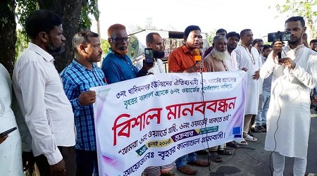 শহিদ আহমেদ খান সাবের,সিলেট প্রতিনিধি : সিলেট সদর উপজেলার খাদিমনগর ইউনিয়নের ৬নং ওয়ার্ডে কালাগুল গ্রামকে পূর্ণ বহালের দাবিতে মাদার মোকামের সামনে বৃহত্তর কালাগুল গ্রামবাসীর উদ্যোগে মানববন্ধন অনুষ্ঠিত হয়েছে।(১৬ জুলাই) বিকেল সাড়ে ৪টার মানবসেবা সমাজকল্যাণ পরিষদের সভাপতি সালাহউদ্দিন ইমরানের পরিচালনায় ও কালাগুল গ্রামের বিশিষ্ট মুরব্বি আব্দুল গফুরের সভাপতিত্বে, মানববন্ধনে প্রধান অতিথি হিসেবে বক্তব্য রাখেন ৩নং খাদিমনগর ইউনিয়ন পরিষদের চেয়ারম্যান মো. দিলোয়ার হোসেন।