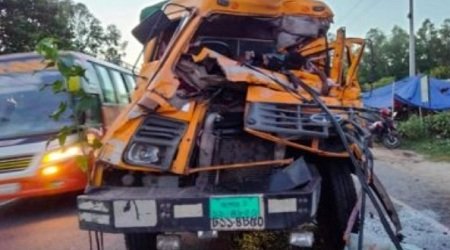 হঠাৎ পিছন দিক হতে দিনাজপুরগামী একটি ট্রাক, যাহার রেজিষ্ট্রেশন নং-যশোর-ট-১১-৪৮৫০ বেপরোয়া গতিতে এসে দাড় করানো ট্রাকটিকে পিছন দিক থেকে ধাক্কা দেয়। এতে সামনে দাড়িয়ে থাকা ট্রাকটি লোডকৃত মালামালসহ মহাসড়ক হতে নিচে উল্টো পড়ে যায় এবং বেপরোয়া গতিতে আসা ট্রকটির সামনের অংশ দুমড়ে মুচড়ে যায়। যার ফলে উক্ত ট্রাক চালকের বাম পার্শ্বে বসে থাকা হেলপার মিতুল হাওলাদার (২৩), পিতা-মোঃ ইব্রাহিম হাওলাদার, সাং-আলাদিপুর, পোষ্ট-বসুন্দিয়া, থানা-বাঘারপাড়া, জেলা-যশোর গুরুত্বর জখম অবস্থায় ট্রাকের মধ্যে আটকা পড়ে।