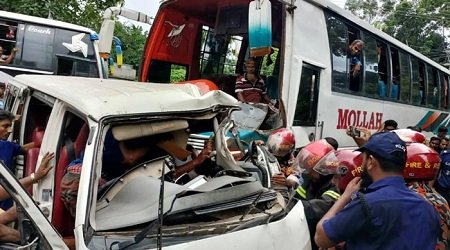 বৃহস্পতিবার (২১ জুলাই) দুপুর ১২টার দিকে এ দুর্ঘটনা ঘটে। তাৎক্ষণিকভাবে নিহত ও আহতদের পরিচয় পাওয়া যায়নি।