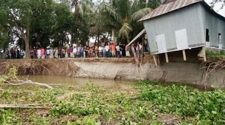 সরেজমিন দেখা যায়, গত ৪ সপ্তাহ ধরে নদীতে ভাঙন শুরু হয়েছে। এখন পর্যন্ত তা অব্যাহত রয়েছে। ভাঙনে ক্ষতিগ্রস্ত বাড়িগুলোর টিন, কাঠসহ বিভিন্ন আসবাবপত্র স্তুপ করে রাখা হয়েছে রাস্তার ওপর। যাদের কিছুটা সামর্থ্য আছে তারা ওই সড়কের ওপরেই নতুন করে কোনমতে ঘর তুলে মাথা গোঁজার ঠাঁই করে নিয়েছেন।