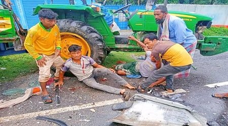 মোঃ আফজাল হোসেন, দিনাজপুর প্রতিনিধি : ফুলবাড়ীতে ট্রাক্টর ও মাইক্রোবাস মুখোমুখি সংঘর্ষে এক পুলিশ সদস্য সহ ৪ জন আহত। গত রোববার সকাল সাড়ে ১০টায় উপজেলার রাঙামাটি (বিজিবি ক্যাম্প) ডাঙ্গাপাড়া এলাকার দিনাজপুর -ফুলবাড়ী মহাসড়কে এই দুর্ঘটনা ঘটে।আহত এস আই মো.সবুর আলীর বাড়ী রংপুর জেলার মিঠাপুকুর থানা, বতর্মান কর্মস্থল সুনামগঞ্জ জেলা। আহত অপর ব্যাক্তিরা হলেন উপজেলার শিবনগর ইউনিয়নের রাজারামপুর গ্রামের ভবেশ এর ছেলে দ্বিপক,একই এলাকার বিষুর ছেলে বিকাশ ও দ্বিজেন এর ছেলে দ্বিলিপ।