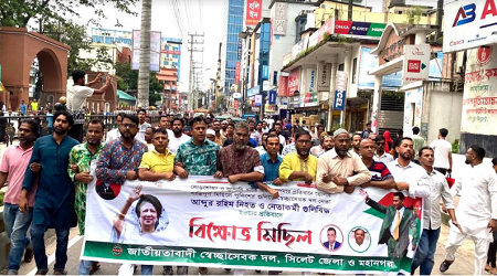 সিলেট মহানগর স্বেচ্ছাসেবক দলের ১ম যুগ্ম আহ্বায়ক জাকির হোসেন ও জেলা স্বেচ্ছাসেবক দলের ১ম যুগ্ম আহ্বায়ক মিফতাউল কবির মিফতার পরিচালনায় অনুষ্ঠিত বিক্ষোভ সমাবেশে বক্তব্য রাখেন ও উপস্থিত ছিলেন মহানগর স্বেচ্ছাসেবক দলের আহবায়ক আব্দুল ওয়াহিদ সোহেল, সিলেট জেলা ও মহানগর স্বেচ্ছাসেবক দলের যুগ্ম আহ্বায়ক দেলওয়ার হোসেন চৌধুরী, আবু আহমদ আনসারী, কামরান হোসেন হেলাল, সৈয়দ সারওয়ার রেজা, আবুল কালাম সাহেদ, জাহাঙ্গীর মিয়া, জেলা ও মহানগর স্বেচ্ছাসেবক দলের আহবায়ক কমিটির সদস্য আব্দুল মুনিম, আহসান মাহবুব, দুলাল আহমদ, সালেক আহমদ, ফারুক আহমদ, জাহেদ আহমদ, আব্দুল আমিন, লিয়াকত আলী ইমন, সাদ্দাম হোসেন, সদর উপজেলা স্বেচ্ছাসেবক দলের আহবায়ক আমিনুর রহমান আমিন, সদস্য সচিব জুয়েল আহমদ, ফেঞ্চুগঞ্জ উপজেলা স্বেচ্ছাসেবক দলের আহবায়ক জাহাঙ্গীর হোসেন, গোয়াইনঘাট উপজেলা স্বেচ্ছাসেবক দলের আহবায়ক আহমদ হুমায়ূন জামাল, সদস্য সচিব সাহাব উদ্দিন চেয়ারম্যান, বিয়ানীবাজার উপজেলা স্বেচ্ছাসেবক দলের সদস্য সচিব আফজল আহমদ, দক্ষিণ সুরমা উপজেলা স্বেচ্ছাসেবক দলের ১ম যুগ্ম আহ্বায়ক হুসেন আহমদ তালুকদার, জকিগঞ্জ উপজেলা স্বেচ্ছাসেবক দলের ১ম যুগ্ম আহ্বায়ক সদরুল হোসাইন, জেলা ও মহানগর স্বেচ্ছাসেবক দল নেতা খলিলুর রহমান, জাহিদ হোসেন, ওয়াহিদ খান, মাসুম আহমদ, নায়িম আহমদ, সাজ্জাদ হোসেন আরমান, সিলেট মহানগর স্বেচ্ছাসেবক দলের আওতাধীন বিভিন্ন ওয়ার্ডের আহবায়ক, সদস্য সচিব ও সিনিয়র যুগ্ম আহবায়কবৃন্দের মধ্যে উপস্থিত ছিলেন তেরাব আলী লিটন, সায়েম আহমদ রনি, আনোয়ার আলী বাইন উদ্দিন, সাজিদ নুর বাবু, হাবিবুর রহমান হাবিব, তাজ হোসেন তারেক, গুলসান আহমদ, রবিউল হোসেন, আব্দুল আহাদ, মেহেদী হাসান সোবেল, ইয়াছিন হোসেন জয়, লায়েক আহমদ, এসকে আলাল, শিপলুজ্জামান, দেলোয়ার হোসেন, জুবায়ের আহমদ, রবিন হোসেন, সাইয়ান আহমদ শিপন, ইমন আহমদ, রাজিব আহমদ, সাইফুল ইসলাম শিপন, ছাব্বির হোসেন, উপজেলা স্বেচ্ছাসেবক দলের যুগ্ম আহবায়কবৃন্দের মধ্যে আব্দুস সালাম আজাদ, নুরেস আলী, মুশফিক আহমদ, শাহিন আহমদ, ছাব্বির আহমদ, তারেক মনোয়ার, শামীম আহমদ, রাশেদ তালুকদার, রোহান আহমদ, রাসেল আহমদ, জাবেদ আহমদ খান, সুজন আহমদ জয়, আল আমিন, রাসেল আহমদ, জুনেদ আহমদ, মানিক কাজী, জুয়েল রানা, সামসুল আহমদ, হান্নান আহমদ, রাশেদ তালুকদার, জহুর আহমদ, মেজু আহমদ, রিপন আহমদ, ইউসুফ হোসাইন মান্না, রুহান আহমদ, রাসেল আহমদ, সাইদুল ইসলাম, তারেক মনোয়ার, রাজু আহমদ, জাবেদ আহমদ খান, সুজন আহমদ জয়, দুলন আহমদ, ময়নুল ইসলাম, আল আমিন, শাহাব উদ্দিন, আওলাদ আহমদ, রাসেল আহমদ, সাইদ আহমদ, ফারুক আহমদ প্রমুখ।