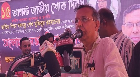 বাদল আহাম্মদ খান ,ব্রাহ্মণবাড়িয়া প্রতিনিধি : এখন বঙ্গবন্ধুর ঋণ শোধ করার সময় এসেছে বলে মন্তব্য করেছেন আইন, বিচার ও সংসদ বিষয়ক মন্ত্রী আনিসুল হক এম.পি। সোমবার ব্রাহ্মণবাড়িয়ার আখাউড়ায় আওয়ামী লীগ আয়োজিত জাতীয় শোক দিবসের অনুষ্ঠানে বিএনপি সরকারের সমালোচনা করে তিনি বলেন, ‘১৫ আগস্ট ভুয়া জন্মদিন পালন না করে বঙ্গবন্ধুর খুনীদের ধরার বিষয়ে সহযোগিতা করলে কাজটা এত কঠিন হতো না।