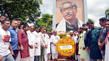শহিদ আহমেদ খান সাবের,সিলেট প্রতিনিধি : জাতির পিতা বঙ্গবন্ধু শেখ মুজিবুর রহমানের ৪৭তম শাহাদাৎবার্ষিকী ও জাতীয় শোক দিবস উপলক্ষে শোক র্যালি, মিলাদ মাহফিল ও বঙ্গবন্ধুর প্রতিকৃতিতে ফুল দিয়ে শ্রদ্ধা জানিয়েছে জাতীয় শ্রমিক সিলেট মহানগর শাখা। সোমবার (১৫ আগস্ট) সকালে সিলেট জেলা প্রশাসক কার্যালয়ে স্থাপিত বঙ্গবন্ধুর মূর্যালে পুষ্পস্তবক অর্পণের মাধ্যমে শ্রদ্ধা নিবেদন করেন নেতৃবৃন্দ। এর পূর্বে নগরীর কোর্ট পয়েন্ট থেকে এক শোক র্যালি গুরুত্বপূর্ণ সড়ক প্রদক্ষিণ শেষে জেলা প্রশাসক কার্যালয়ে এসে শেষ হয়। বাদ যোহর মহানগর শ্রমিক লীগের উদ্যোগে কালেক্টরেক্ট মসজিদে মিলাদ ও দোয়া মাহফিল অনুষ্ঠিত হয়।