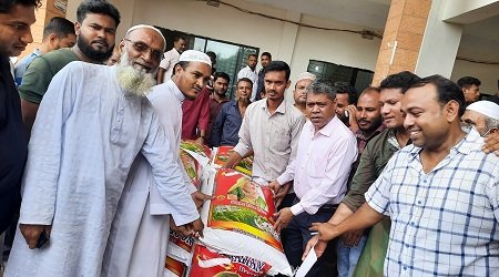 এ সময় প্যানেল মেয়র রতন কৃষ্ণপালসহ কাউন্সিলরবৃন্দ উপস্থিত ছিলেন। পৌর মেয়র শোক দিবসে গরীব, দুস্থ ও এতিম খানা সহ বিভিন্ন প্রতিষ্ঠানে ৫ টন চাউল বিতরণ করেন।