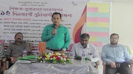 প্রশিক্ষণের উদ্বোধনী অনুষ্ঠানে বক্তব্য রাখেন,জেলা উপানুষ্ঠানিক শিক্ষা ব্যুরোর উপ পরিচালক বিদ্যুৎ রায় বর্মন, উপজেলা মাধমিক শিক্ষা অফিসার মো.গাউসুল আজম পাটওয়ারী, সরকারি কারিগরী উচ্চ বিদ্যালয়ের প্রধান শিক্ষক মোহাম্মদ ছানাউল্লাহ ও জেমস্রে নির্বাহী পরিচালকআসাদুজ্জামান চৌধুরী প্রমূখ। ১২ দিন ব্যাপী প্রশিক্ষণে উপানুষ্ঠানিক শিক্ষা ব্যুরো কর্তৃক পরিচালিত রিচিং আউট অব স্কুল চিলড্রেন প্রকল্পের প্রাক প্রাথমিক শিক্ষা কেন্দ্রের ৩৫ জন শিক্ষক ও তিনজন সুপারভাইজার অংশগ্রহণ করেন। প্রশিক্ষণে ঝরে পড়া শিশুদের আনন্দমুখর পরিবেশে পাঠদানের কলাকৌশল সম্পর্কে শিক্ষকদেরকে ধারণা দেওয়া হচ্ছে।