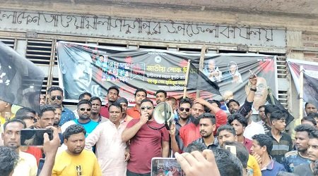তোবারক হোসেন খোকন,দুর্গাপুর(নেত্রকোনা)প্রতিনিধি : ২০০৫ সালের ১৭ আগস্ট সারাদেশে একযোগে সিরিজ বোমা হামলার প্রতিবাদে দুর্গাপুরে বিক্ষোভ মিছিল ও কালো পতাকা প্রদর্শন কর্মসূচি পালন করেছে উপজেলা যুবলীগ। বুধবার (১৭ আগস্ট) দুপুরে বিক্ষোভ মিছিল ও প্রতিবাদ সমাবেশ অনুষ্ঠিত হয়।উপজেলা যুবলীগের সাধারণ সম্পাদক ও উপজেলা ভাইসচেয়ারম্যান সাদ্দাম আকঞ্জি এর নের্তৃত্বে এক বিশাল বিক্ষোভ মিলিছ পৌর শহরের প্রধান সড়ক গুলো প্রদক্ষিন শেষে দলীয় কার্যালয়ে উপজেলা যুবলীগের সভাপতি আব্দুল হান্নানের সভাপতিত্বে প্রতিবাদ সভায় বক্তব্য রাখেন, যুগলীগের সহ:সভাপতি পাভেল চৌধুরী, সাধারণ সম্পাদক সাদ্দাম আকঞ্জি যুগ্নসাধারণ সম্পাদক শাহীন মিয়া, যুবলীগ নেতা আহাম্মদ মড়ল, মো. আলা আমিন, সাহাদাত হোসেন, নুর নবী, ছাত্রলীগ নেতা সাইফুল ইসলাম, নাইম উদ্দিন রিজভী প্রমুখ।বক্তারা বলেন, ‘প্রধানমন্ত্রী শেখ হাসিনার নেতৃত্বে দেশ আজ জঙ্গিবাদ মুক্ত হয়েছে। বিএনপি-জামায়াত জোট সরকার এ দেশকে জঙ্গিবাদের দেশ বানিয়েছিল। ১৯৭৫ সালের ১৫ আগস্ট যারা জাতির পিতা বঙ্গবন্ধুকে স্বপরিবারে হত্যা করেছিল তারা মাথা চাড়া দিচ্ছে। তাদের প্রতিহত করতে দেশের সর্বস্তরের জনগণকে ঐক্যবদ্ধ হওয়ার আহবান জানানো হয়।