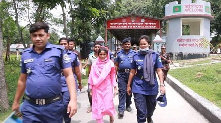 ডেস্ক নিউজ : চুয়াডাঙ্গার দর্শনা চেকপোস্ট দিয়ে বাড়ি ফিরেছেন প্রেমের টানে বাংলাদেশে আসা ভারতীয় এক তরুণী। রোববার (৪ সেপ্টেম্বর) দুপুর ১টার দিকে আইনি প্রক্রিয়া শেষে দর্শনা জয়নগর চেকপোস্ট দিয়ে তাকে ভারতে ফেরত পাঠানো হয়। শ্রীমতি সাথী সরকার ভারতের নদীয়া জেলার রাধাকান্তপুরের পরিতোষ সরকারের মেয়ে।