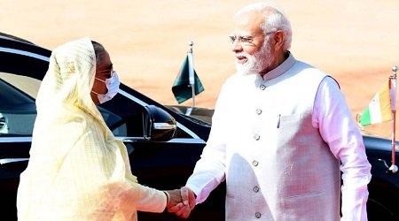 ভারতের প্রধানমন্ত্রী বলেন, ‘ভারত-বাংলাদেশের মধ্যে বাণিজ্য দ্রুত বাড়ছে। তথ্যপ্রযুক্তি, মহাকাশ ও পারমাণবিক খাতে সহযোগিতা বিস্তৃত করার আলোচনা আমরা করেছি। ভারত-বাংলাদেশের মধ্যে বিদ্যুৎ সঞ্চালন লাইন করার বিষয়েও আলোচনা চলমান আছে।’