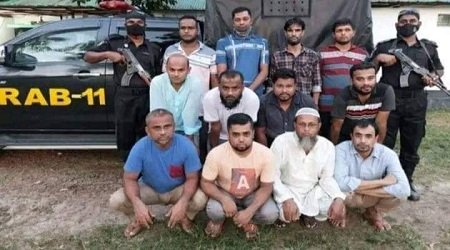 আটককৃতরা হলো নরসিংদী শহরের বিলাসদী মহল্লার বাসিন্দা আলামিন (৪২), ইব্রাহীম মোল্লা (৩০), জহিরুল ইসলাম দুুলাল (৪৭), মোঃ সাইফুল ইসলাম (২৮) ও রাহেল মিয়া (৩৫), পূর্ব ভেলানগর এলাকার সজিব আহম্মেদ (২৬) ও মশিউর রহমান রাসেল (৩০), সাটিরপাড়া এলাকার খোকন ভৌমিক (৪০), এমদাদুর রহমান (৩৯), রায়পুরার রামনগর গ্রামের ইমাম হোসেন (৩৬), পলাশের মালিতা এলাকার জাহিদুল ইসলাম শান্ত (২৫) ও মাধবদীর মনোহরপুরের আলতাফ হোসেন (৫৩)।র্যাব ১১ এর নরসিংদী ক্যাম্প কমান্ডার অতিরিক্ত পুলিশ সুপার খন্দকার মো: শামীম হোসেন বলেন, দালাল চক্রটি বিআরটিএ এর লাইসেন্স তৈরি করে দেয়ার কথা বলে ভুক্তভোগী গ্রাহকদের নিকট থেকে বিপুল পরিমাণ অর্থ হাতিয়ে নিয়ে বেআইনিভাবে অন্যের বিআরটিএ আবেদন ফরম নিজেদের দখলে রেখে প্রতারণা করে আসছিল।