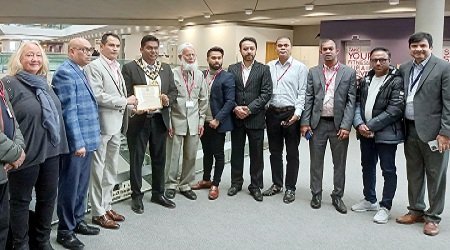 শহিদ আহমেদ খান সাবের,সিলেট প্রতিনিধি : যুক্তরাজ্যে সফররত সিলেট মহানগর স্বেচ্ছাসেবক লীগের সভাপতি ও সিসিক নগর উন্নয়ন পরিকল্পনা কমিটির সভাপতি, সিসিক ৭নং ওয়ার্ডের কাউন্সিলর আফতাব হোসেন খাঁনকে ফুলেল শুভেচ্ছা ও ক্রেস্ট প্রদান করা হয়েছে। সোমবার দুপুরে রচডেল বারা কাউন্সিল ভবনে বৃটেনের রচডেল বারা কাউন্সিলের মেয়র সাঈদ আলী আহমদের পক্ষ থেকে বারা কাউন্সিলের কাউন্সির বৃন্দ ও রচডের বাঙ্গালী কমিনিউটির নেতৃবৃন্দে উপস্থিতিতে তাকে এ সম্মাননা জানানো হয়।