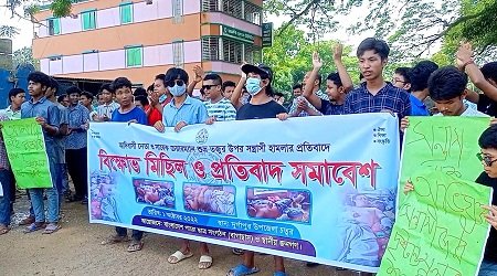 তোবারক হোসেন খোকন,দুর্গাপুর(নেত্রকোনা)প্রতিনিধি : নেত্রকোণার দুর্গাপুরে কুল্লাগড়া ইউনিয়নের সাবেক চেয়ারম্যান, বঙ্গবন্ধু পরিষদের উপজেলা কমিটির সাংগঠনিক সম্পাদক ও আদিবাসী নেতা সুব্রত সাংমা‘র ওপর সন্ত্রাসী হামলার প্রতিবাদে মানববন্ধন ও বিক্ষোভ মিছিল অনুষ্ঠিত হয়েছে। শনিবার দুপুরে পৌর শহরের উৎরাইল বাজারে ঘন্টাব্যাপি বিক্ষোভ মিছিল ও প্রতিবাদ সমাবেশ অনুষ্ঠিত হয়।