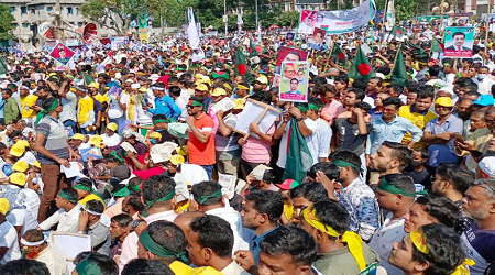 ডেস্ক নিউজ : ময়মনসিংহে বিএনপির বিভাগীয় গণসমাবেশ শুরু হয়েছে। কানায় কানায় পূর্ণ হয়ে গেছে নগরীর পলিটেকনিক ইনস্টিটিউট ছাত্রাবাস মাঠ। খালেদা জিয়ার নিঃশর্ত মুক্তি, নির্বাচনকালীন তত্ত্বাবধায়ক সরকার, জ্বালানি তেল, চাল-ডালসহ নিত্য প্রয়োজনীয় দ্রব্যমূল্য বৃদ্ধি, পুলিশ ও সন্ত্রাসীদের গুলিতে হত্যা, হামলা এবং মিথ্যা মামলার প্রতিবাদে শনিবার বিভাগীয় গণসমাবেশ করছে বিএনপি। এতে প্রধান অতিথি হিসেবে বক্তব্য দেবেন দলটির মহাসচিব মির্জা ফখরুল ইসলাম আলমগীর।