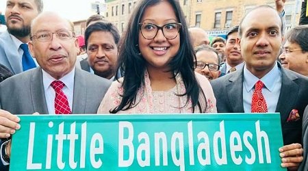 রোববার ব্রুকলিনে চার্চ-ম্যাকডোনাল্ড ইন্টারসেকশনে রাস্তার নতুন নামফলক উম্মোচন করেন নিউ ইয়র্কের বাংলাদেশি বংশোদ্ভূত কাউন্সিলওম্যান শাহানা হানিফ।