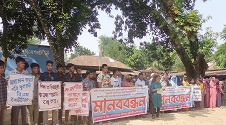 মোঃ আফজাল হোসেন দিনাজপুর প্রতিনিধি : ফুলবাড়ীতে টেকনিক্যাল অ্যান্ড বিএম ইন্সটিটিউটের নামে খারিজ-খতিয়ানভূক্ত ভূমি রক্ষা ও শিক্ষক কর্মচারী, শিক্ষার্থীদেরকে ভয়-ভীতি প্রর্দশন ও সরকারী বরাদ্ধকৃত ভবন নির্মাণে বাধা সৃষ্টিকারীদের শাস্তির দাবিতে কলেজ চত্তরে গতকাল বৃহস্পাতিবার সকাল সাড়ে ১০ টায় ঘন্টা ব্যাপি প্রতিবাদ সভা ও মানববন্ধন অনুষ্ঠিত হয়।মানবন্ধনে বক্তব্য রাখেন ফুলবাড়ী টেকনিক্যাল এন্ড বিএম ইন্সটিটিউট এর অধ্যক্ষ মোঃ আবু তৈয়ব ছালাহউদ্দিন।