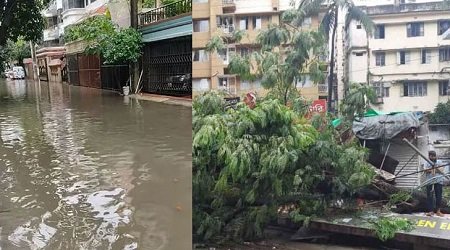 মৎস্য ভবনের সামনে একটি লেনে যানচলাচলে বিঘ্ন ঘটছে। রাতে একটি বড় গাছ পড়ে সেটি বন্ধ হয়ে যায়। নিউ মার্কেট এলাকায় একটি গাছ এখনো সড়কে পড়ে আছে। সেখানে একটি লেন পুরোপুরি বন্ধ রয়েছে। সড়কে পানি ও গাছ পড়ে থাকায় যান চলাচল ব্যাহত হচ্ছে। বিকল্প পথে গাড়ি নিয়ে গন্তব্যে যেতে হচ্ছে যাত্রীদের। মঙ্গলবার সকালে চরম দুর্ভোগে পোহাতে হয়েছে অফিসগামী লোকজনকে। সড়কে তীব্র যানজটে এক ঘণ্টার পথ তিন ঘণ্টায় যেতে হয়েছে।
