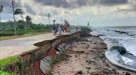 ডেস্কনিউজঃ সামুদ্রিক ঘূর্ণিঝড় সিত্রাং উপকূলে আঘাত হানার পর কক্সবাজার-টেকনাফ মেরিন ড্রাইভ সড়ক ধসে গেছে। সিত্রাংয়ের প্রবল তাণ্ডবে ঝড়ো বাতাস ও বৃষ্টিপাত হয়। কক্সবাজারের টেকনাফ উপজেলার সেন্টমার্টিনে জোয়ারের পানি কমে গেছে। ঘূর্ণিঝড়ের আঘাতে কয়েক শ’ ঘর-বাড়ি ভেঙে গেছে। ধসে পড়েছে মেরিন ড্রাইভের একটি অংশ।