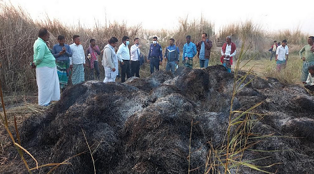 খোরশেদ আলম বাবুল,শরীয়তপুর প্রতিনিধি : জাজিরার কুন্ডেরচরে দুর্বৃত্তের দেওয়া আগুনে পুড়েছে আমন ধান ক্ষেত ও বাণিজ্যিক খেড় (কাশ ফুলের গাছ)। ফসল ও খেড় হারিয়ে দিশেহারা হয়ে পড়েছে কৃষক। ঘটনা পরবর্তী উপজেলা ও পুলিশ প্রশাসন ঘটনাস্থল পরিদর্শণ করেছেন।উপজেলা কৃষি অফিস ও স্থানীয় সূত্র জানায়, উপজেলার কুন্ডেরচর ইউনিয়নের বাতিরচরে ৫০ বিঘা আমন ধান ক্ষেত ও ৪০০ বিঘা জমির বাণিজ্যিক খেড়ের স্তুপ সোমবার সন্ধ্যায় দুর্বৃত্তের আগুনে পুড়ে যায়। এখনো ক্ষতির পরিমান নির্নয় করতে পারেনি তারা।