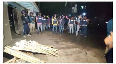 মোঃ সালাহউদ্দিন আহমেদ,নরসিংদী : নরসিংদীর চিনিশপুরে জেলা বিএনপির অস্থায়ী কার্যালয়ে অভিযান চালিয়েছে পুলিশ। মঙ্গলবার সন্ধ্যায় পরিচালিত এই অভিযানে ১টি রিভলবার, ককটেল সদৃশ্য সরঞ্জাম ও মশাল জব্দ করা হয়েছে বলে দাবি পুলিশের। এসময় ১০ জন নেতাকর্মীকে আটক করা হয়েছে।অতিরিক্ত পুলিশ সুপার (সদর সার্কেল) কে এম শহিদুল ইসলাম সোহাগ এই তথ্য নিশ্চিত করেছেন।জানা গেছে, সন্ধ্যায় জেলা বিএনপির আহ্বায়ক খায়রুল কবির খোকন এর নেতৃত্বে বিএনপির অস্থায়ী কার্যালয়ে ঘরোয়াভাবে সাংগঠনিক বৈঠক চলছিল।