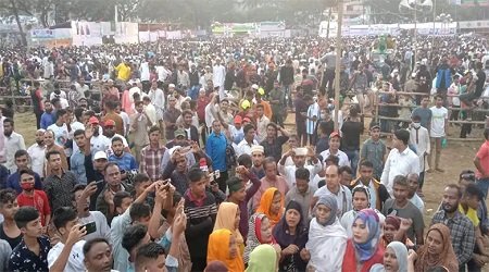 ডেস্কনিউজঃ রাত পোহালেই সিলেট বিএনপির বিভাগীয় সমাবেশ। এরইমধ্যে কানায় কানায় পূর্ণ হয়ে গেছে সিলেট আলিয়া মাদ্রাসার মাঠ। খণ্ড খণ্ড মিছিল নিয়ে মাঠে ঢুকছে বিভিন্ন জেলা থেকে আসা নেতাকর্মীরা। প্রস্তুত সমাবেশ মঞ্চ। সমাবেশে আসা নেতাকর্মীরা উৎসবে মেতেছে।