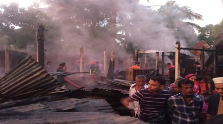 নোয়াখালী প্রতিনিধি : নোয়াখালীর চাটখিলের খিলপাড়া পশ্চিম বাজারে বৈদ্যুতিক শর্ট সার্কিটের আগুন লেগে ৩টি দোকান পুড়ে গেছে। এতে প্রায় ৯লক্ষ টাকার ক্ষয়ক্ষতি হয়েছে বলে দাবি ক্ষতিগ্রস্ত ব্যবসায়ীদের।শনিবার (১৯ নভেম্বর) রাত পৌনে ৪টার দিকে এ অগ্নিকাণ্ড ঘটে। খবর পেয়ে ফায়ার সার্ভিসের একটি ইউনিট প্রায় ১ ঘণ্টা চেষ্টার পর আগুন নিয়ন্ত্রণে আনে।স্থানীয়রা জানান, শনিবার ভোর রাতে আলমগীরের ফার্নিচার দোকানে বৈদ্যুতিক শর্ট সার্কিট থেকে আগুনের সূত্রপাত হয়। মুহূর্তের মধ্যে আগুনের লেলিহান শিখা চারদিকে ছড়িয়ে পড়ে। এতে করে আরো দুটি দোকান পুড়ে যায়। পরে স্থানীয়রা এসে আগুন নেভানোর চেষ্টা করে। পরে ফায়ার সার্ভিসে খবর দেওয়া হয়।বিষয়টি নিশ্চিত করেছেন চাটখিল ফায়ার সার্ভিসের ফায়ার ফাইটার মেহেদী হাসান। তিনি বলেন, খবর পেয়ে একটি ইউনিট ঘটনাস্থলে পৌঁছে প্রায় ১ ঘণ্টা চেষ্টার পর আগুন নিয়ন্ত্রণে আনে। তবে কোন দোকান থেকে প্রথমে আগুন ছড়িয়েছে তা জানা যায়নি। বৈদ্যুতিক শর্ট-সার্কিট থেকে এ আগুনের সূত্রপাত হয়েছে বলে ধারণা করা হচ্ছে। আগুনে ৩টি দোকান পুড়ে গেছে। তদন্ত সাপেক্ষে বিস্তারিত পরে জানানো হবে।