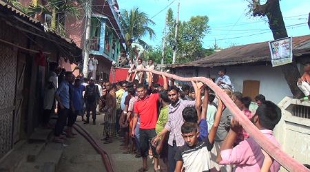 এই সময়ের মধ্যেই ঘরে থাকা জ¦ালানি গ্যাসের সিলিন্ডার বিস্ফোরিত হয়ে আগুন ছড়িয়ে পড়ে। এতে করে প্রতিবেশি নাছিসের বসত ঘরটিও আগুনে সম্পূর্ন পুড়ে যায়। দুই ঘরেই অন্তত ১০ পরিবারের বসবাস ছিলো এবং তাদের কোনো কিছুই আগুন থেকে রক্ষা করতে পারেননি বলে জানিয়েছেন ক্ষতিগ্রস্থরা।