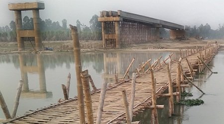 এম সাজেদুল ইসলাম(সাগর) নবাবগঞ্জ (দিনাজপুর) : দিনাজপুরের নবাবগঞ্জ ও পীরগঞ্জের জয়ন্তিপুর ঘাটের সেতু নির্মাণ সম্পন্ন না হওয়ায় বাঁশের লম্বা সাঁকোতে পারাপার হচ্ছে দুই উপজেলার শতশত নারী পুরুষ। তবে কতৃপক্ষ বলেছে, অল্প দিনের মধ্যেই নির্মাণ কাজ শেষ হলেই আলোর মুখ দেখবে সেতুটি। বর্তমানে জোরে সোরে কাজ শুরু করেছে নির্মানাধীন ঠিকাদারি প্রতিষ্ঠান। করোনার কারণে দীর্ঘদিন বন্ধ থাকার পর আবার পুরোদমে নির্মান কাজ শুরু হয়েছে রংপুরের পীরগঞ্জ উপজেলার করতোয়া নদীতে জয়ন্তীপুর ঘাটে নির্মানাধীন ব্রীজ। সেতুটি নির্মান সম্পূর্ণ হলে রংপুর সহ নবাবগঞ্জ হয়ে হিলি স্থলবন্দর সহ জয়পুর হাটে যোগাযোগ ব্যবস্থার উন্নয়ন হবে।
