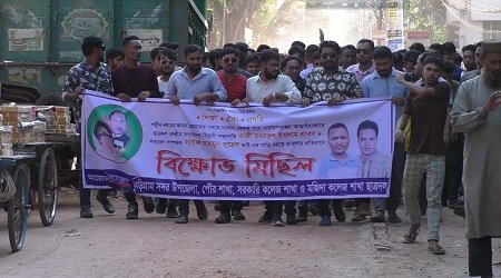 রাশিদুল ইসলাম রাশেদ, কুড়িগ্রাম সংবাদদাতা : ব্রাহ্মণবাড়িয়ায় ছাত্রদলের কর্মী নয়নের কবর জিয়ারত শেষে ফেরার পথে নারায়ণগঞ্জের হাটহাজারীতে ছাত্রদলের কেন্দ্রীয় সভাপতি কাজী রওনকুল ইসলাম শ্রাবণ এবং সাধারণ সম্পাদক সাইফ মাহমুদ জুয়েলের গাড়ি বহরে হামলার প্রতিবাদে বিক্ষোভ ও সমাবেশ করেছে কুড়িগ্রাম জেলা ছাত্রদল।শনিবার দুপুরে কুড়িগ্রাম দাদামোড়ে অবস্থিত জেলা বিএনপির কার্যালয় থেকে সদর উপজেলা জেলা ছাত্রদলের আহবায়ক সোহেল রানার সভাপতিত্বে একটি বিক্ষোভ মিছিল বের হয়। মিছিলটি বিক্ষোভ শেষে দাদামোড় রেল ক্রসিংয়ে এক সংক্ষিপ্ত পথসভায় মিলিত হয়।এ সময় বক্তব্য রাখেন-জেলা ছাত্রদলের সভাপতি মোঃ আমিমুল ইহসান, সাধারণ সম্পাদক হাসান যোবায়ের হিমেল, সদর উপজেলা ছাত্রদলের সদস্য সচিব আবু সাইদ শিথিল, পৌর ছাত্রদলের সদস্য সচিব লুৎফর রহমান কর্ণেল, মজিদা কলেজ ছাত্রদলের সদস্য সচিব নাঈম ইসলাম এবং সরকারি কলেজ ছাত্রদলের আহবায়ক আশিকুর রহমান আকাশ।সমাবেশে বক্তারা অবিলম্বে ছাত্রদলের কেন্দ্রীয় নেতাদের উপর হামলাকারীদের দ্রুত গ্রেফতার করে দৃষ্টান্তমূলক শাস্তির দাবি জানান। এছাড়া ছাত্রদলের সকল নেতা-কর্মীকে আগামীর সকল আন্দোলন-সংগ্রামে স্বতঃস্ফূর্ত অংশগ্রহণের আহবান জানান।
