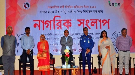 নোয়াখালী প্রতিনিধি : সবার মাঝে ঐক্য গড়ি, নারী ও শিশু নির্যাতন বন্ধ করি এই প্রতিপাদ্য নিয়ে নারীর প্রতি সহিংসতা প্রতিরোধে নাগরিক সমাজ, প্রশাসন ও নীতিনির্ধারকদের মধ্যে নাগরিক সংলাপ অনুষ্ঠিত হয়। শনিবার সকাল থেকে মাইজদী বিআরডিবি মিলনায়তনে অনুষ্ঠিত এ সংলাপ আয়োজন করে নারী অধিকার জোট ও এনআরডিএস। নারীর বিরুদ্ধে সংগঠিত সকল প্রকার বৈষম্য, নির্যাতন ও সহিংসতার বিরুদ্ধে জনমত গড়ে তোলার ল¶্যে নারী অধিকার জোট, এনআরডিএস এবং অন্যান্য বেসরকারি উন্নয়ন সংগঠন ২৫ নভেম্বর থেকে ১০ ডিসেম্বর পর্যন্ত প্রতিরোধ প¶ পালন করছে।