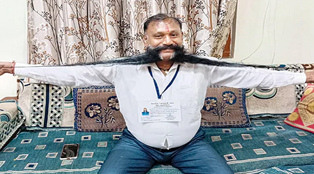 তার গোঁফের দৈর্ঘ্য ২.৫ ফিট। গোঁফকে কী করে ভোটের কৌশল হিসেবে কাজে লাগাচ্ছেন সে কথাও জানালেন এই সাবেক সেনা কর্মকর্তা।