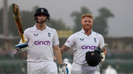 স্পোর্টস ডেস্ক : ১৭ বছর পর পাকিস্তানের মাটিতে টেস্ট সিরিজ খেলতে গেছে ইংল্যান্ড। রাওয়ালপিন্ডিতে অনুষ্ঠিত সিরিজের প্রথম টেস্টের প্রথম দিনেই চার ব্যাটারের সেঞ্চুরিতে বিশ্বরেকর্ড গড়ে ফেলল সফরকারীরা। প্রথম দিন ৭৫ ওভার ব্যাট করে তাদের সংগ্রহ ৪ উইকেটে ৫০৬ রান। টেস্ট ইতিহাসে এটাই কোনো ম্যাচের প্রথম দিন সর্বোচ্চ রানের বিশ্বরেকর্ড।