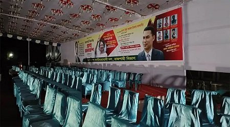 ডেস্কনিউজঃ রাজশাহী বিএনপির বিভাগীয় গণসমাবেশ শনিবার। এরইমধ্যে প্রস্তুত করা হয়েছে মঞ্চ। এখন চলছে মাইক লাগানোর কাজ। রাজশাহীর গণসমাবেশকে স্মরণীয় করে রাখতে প্রস্তুত করা হয়েছে বিশাল মঞ্চ। এর আগের ৮ টি সমাবেশে এত বড় মঞ্চ প্রস্তুত করা হয়নি।