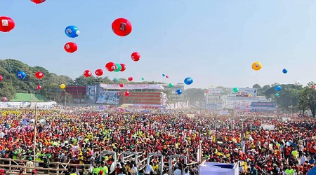 ডেস্ক নিউজ : জনসমুদ্রে পরিণত হয়েছে চট্টগ্রামের রেলওয়ে পলোগ্রাউন্ড ময়দান। উৎসবের আমেজ নিয়ে চট্টগ্রামের ঐতিহাসিক পলোগ্রাউন্ড ময়দানে জড়ো হয়েছেন লাখো আওয়ামী লীগ নেতাকর্মী। চট্টগ্রাম মহানগর এবং উত্তর-দক্ষিণ জেলা আওয়ামী লীগ আয়োজিত এ জনসভায় প্রধান অতিথি হিসেবে যোগ দিয়েছেন প্রধানমন্ত্রী ও আওয়ামী লীগ সভানেত্রী শেখ হাসিনা।